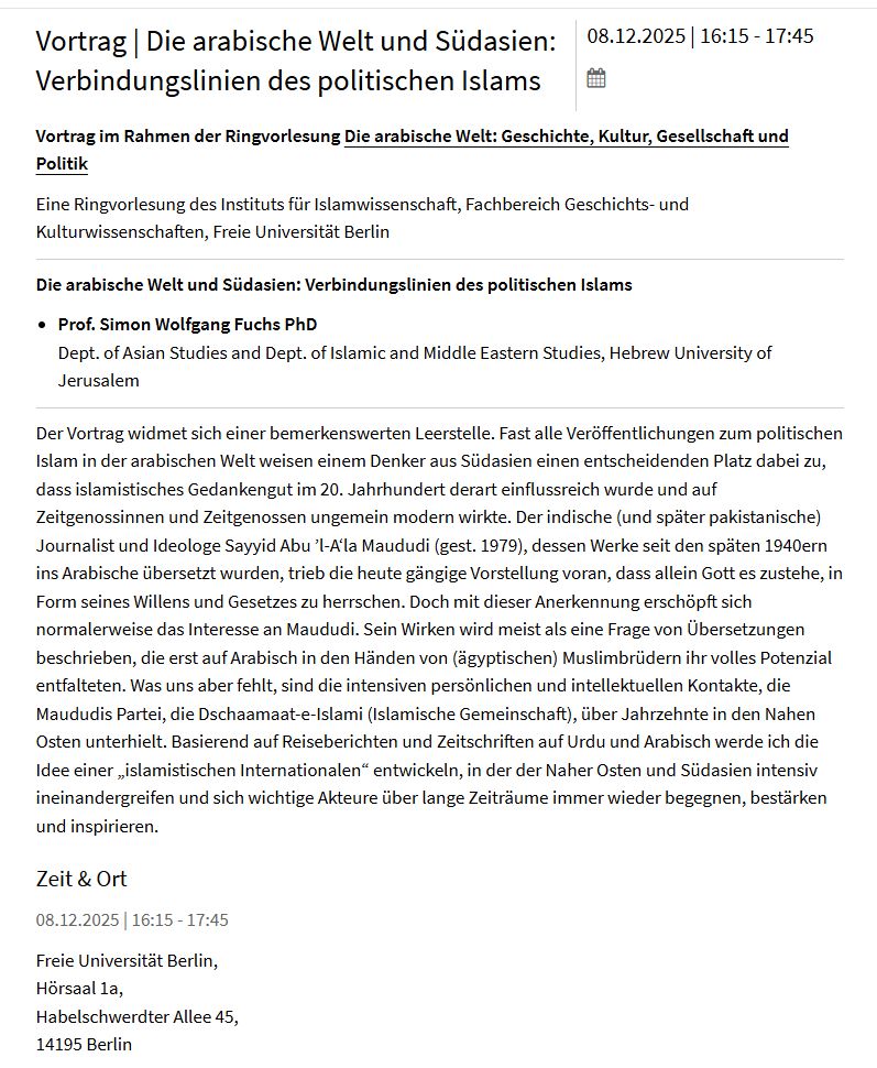 Looking forward to talking about overlooked connections of political Islam between the Arab World, Iran, and South Asia as part of a lecture series on “The Arab World: History, Culture, Society and Politics”